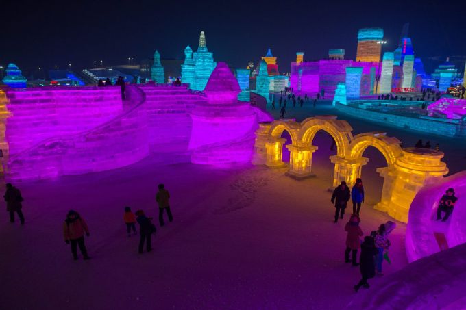 Ogromne lodowe miasto co roku zwiedza 10 tys. osób. Zimą temperatura powietrza wynosi -10…-20ºC – to idealny warunki dla tworzenia rzeźb lodowych.