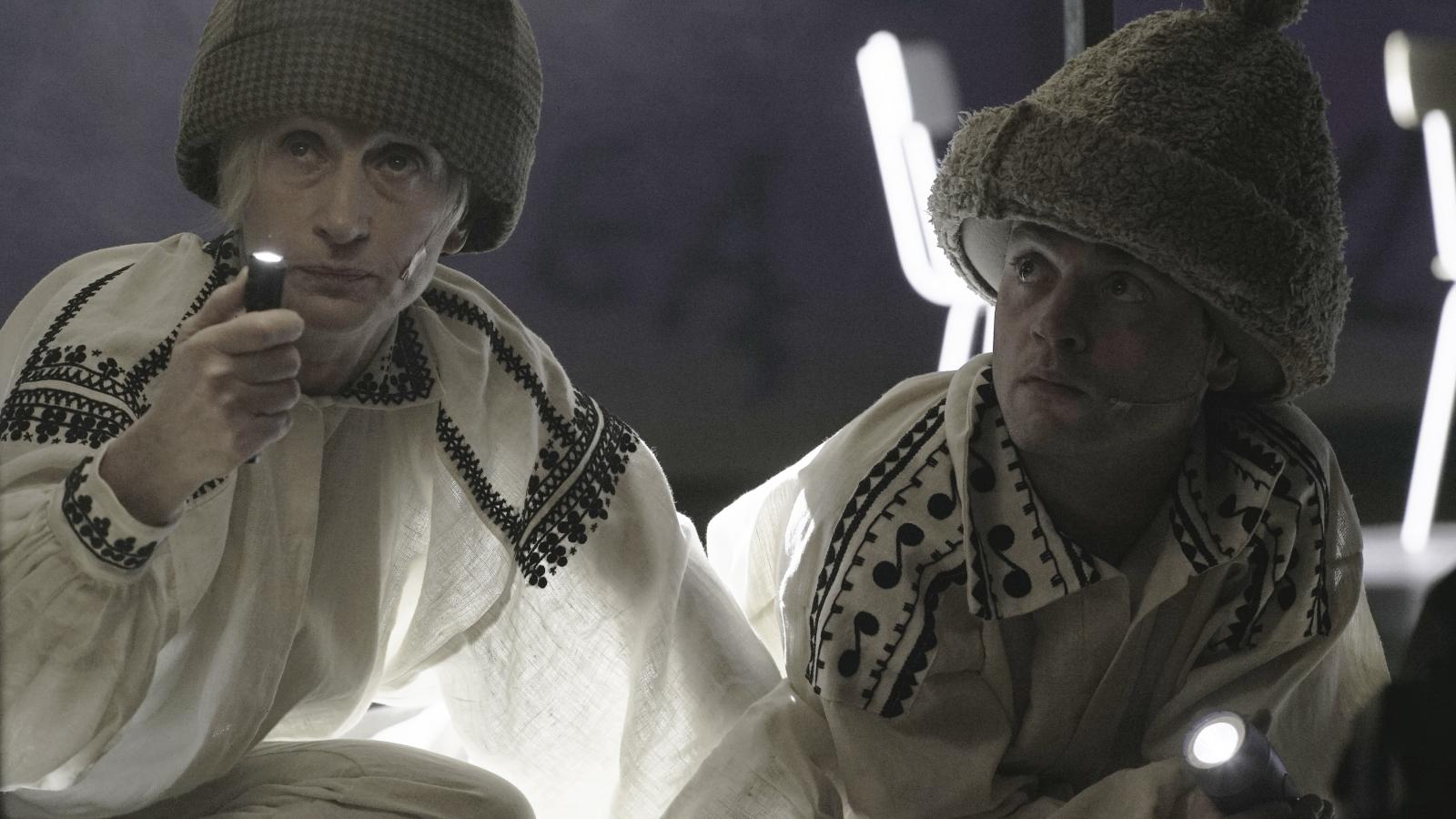 Jednym z najlepszych momentów jest Muzyka Ericha Zanna, opowieść o człowieku uzależniającym się od tajemniczej muzyki mieszkającego nieopodal kompozytora. Aktorzy biegają po wielkiej hali Teatru Nowego, wychodzą na parking i przed wejście, co jest z resztą wyświetlane z rzutnika. Szaleństwo sączy się młodzieżowym językiem, jest w tym element gry, surrealistycznego LARPa, ruch zdobywa i utrzymuje uwagę. Wcześniej dreszcz emocji przywołuje ludowe wykonanie pieśni Kosiarze stoją, niestety już żarty z polskiej wsi wypadają słabo. Materiał przemęczony. Parodią siebie są kartonowe stożki Wielkiej Rasy, rozmnażające się bezpłciowo na oczach widza - zamiast przerażającego, kosmicznego spektaklu, kręcą się zidiociałe i ślepe. W tym przypadku spełnia to swoją rolę, rezonuje z publicznością. Zachwyca Piotr Polak w scenie z krzesłem, doskonale domyka klamrę spektaklu, mówiąc monolog o wynalazku do przeszkadzania ludziom.