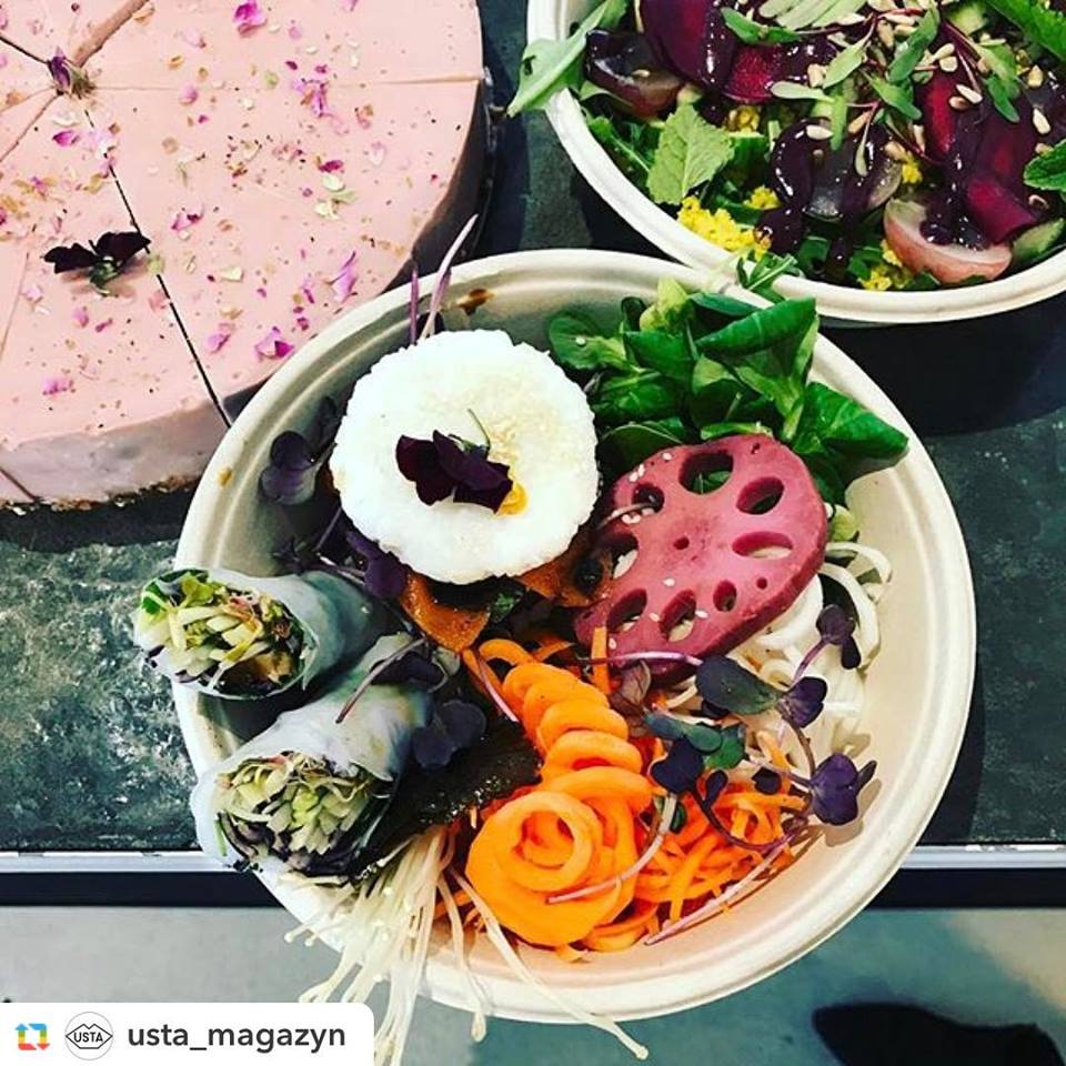 Vege Labb, jak pewnie zdążyłeś się domyślić, jest całkowicie vege. Menu mają proste i czytelna. Z misek masz do wyboru jedną z sześciu opcji. Przepyszna jest Asian Spring Rolls Buddha, tzn. makaron z cukinii, makaron z kalarepy, ogórek świeży i marynowany, rzodkiewka, awokado z czarnym sezamem, kiełki zielonego groszku, mango i gwiazda programu, czyli spring rollsy z tempehem i kolendrą. W zestawie z genialnym sosem orzechowym. Spróbuj!