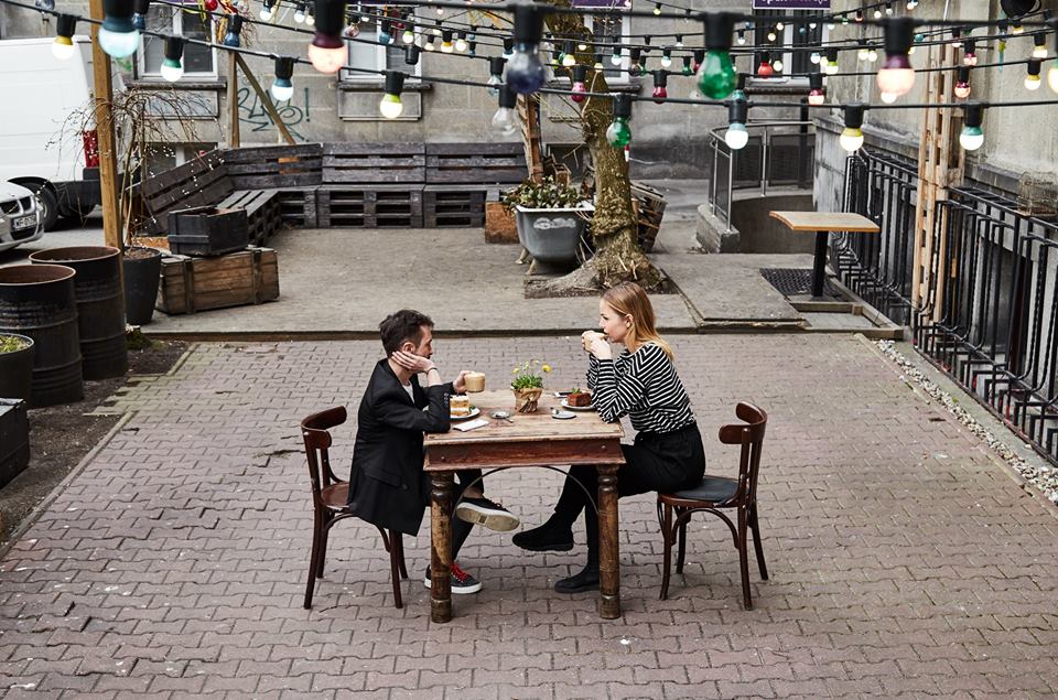 Lokal położony jest w bardzo przyjemnym zakątku – od miejskiego szumu osłonięty jest blokami, a samo podwórko jest bardzo klimatyczne. Już w minionych latach ich ogródek ściągał tłumy głodnych gości. W tym roku powraca również sezon na grilla pod chmurką – każdy piątek i sobota. Wpadajcie koniecznie, krążą plotki, że szef kuchni Olaf ma nowy sprzęt, specjalnie na tą okazję!