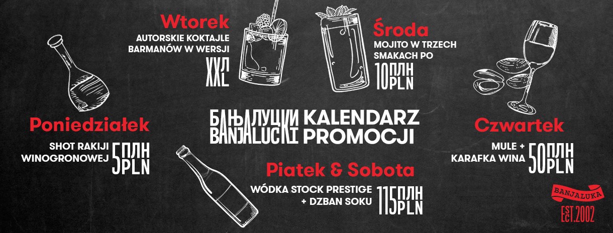 Dobry posiłek przed początkiem całonocnej imprezy to podstawa. Najlepszy grill w stolicy i bajkowy ogródek. W Banjaluce połączyli to z promocją na alkohol – butelka wódki Stock Prestige i dzban soku w cenie 150zł. Brzmi jak plan! Gdzie? Szkolna 2/4