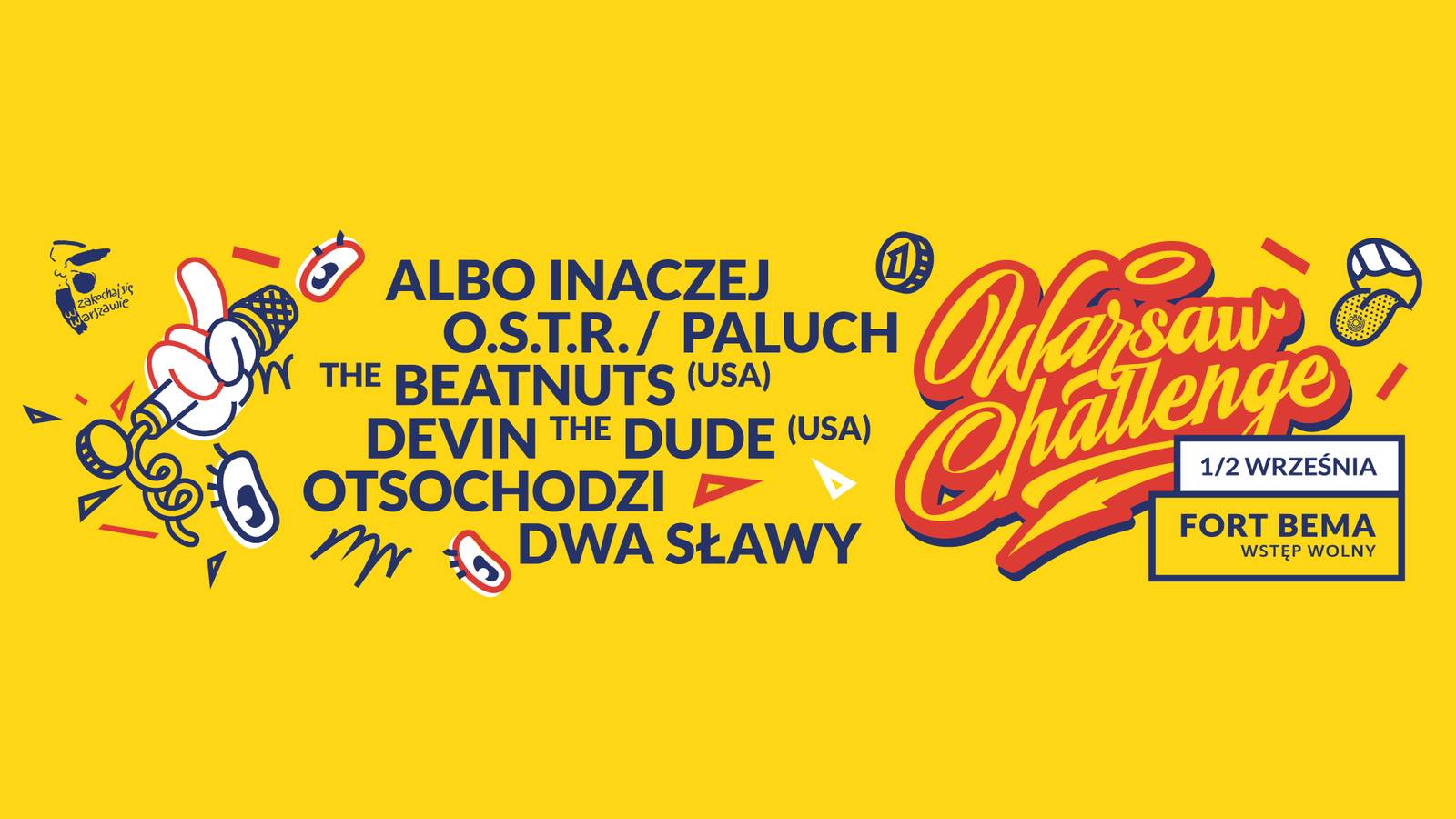 Wielu czekało na ten piątek właśnie z tego konkretnego powodu. Impreza potrwa cały weekend, aby wszyscy podczas jej trwania mogli chłonąć wszystkie elementy kultury hip-hopu. W piątek na terenie Klubu SPATiF odbędą się eliminacje Breaking i Bgirls 1vs1, Bboy Mouse oraz warsztaty, a na koniec before party Warsaw Challenge. W sobotę i niedzielę wpadajcie za to na Fort Bema, gdzie na dwóch scenach odbędą się koncerty, pokazy i bitwy. Standardowo nie zabraknie również dobrego jedzenia z food-trucków. Wstęp free!