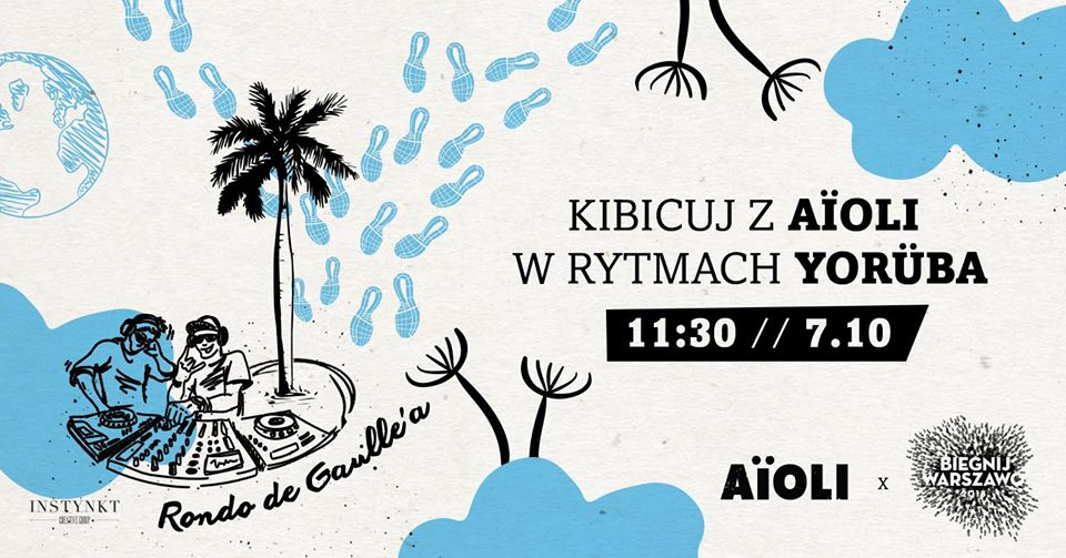 Wspólne kibicowanie największemu biegowi w stolicy? Jasne! Aioli Cantine Bar & Deli podjęła się trudnego zadania – w niedzielę, pod palmą na Rondzie De Gallue`a organizuje wspólny doping dla uczestników maratonu Biegnij Warszawo. Nie zabraknie dobrej muzyki – przygrywać będzie kolektyw Yoruba. Na bifor wpadajcie do lokalu na Świętokrzyskiej!