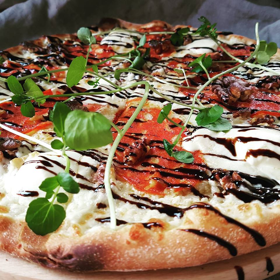 Ponoć najlepsza pizza na Śląsku. Obfity, ręcznie uformowany rant z puszystego, chrupiącego ciasta, wypiekanego w piecu opalanym drewnem, świeże, apetyczne składniki których ilość trafiona jest w punkt i tylko dwanaście gotowych kompozycji, które znajdują się w menu (wiadomo, wąska specjalizacja). Najwyższa cena za pizzę 32cm to 32zł, spokojnie najecie się tym w dwie osoby. Tak, nam tez zaczęła ciec ślinka.