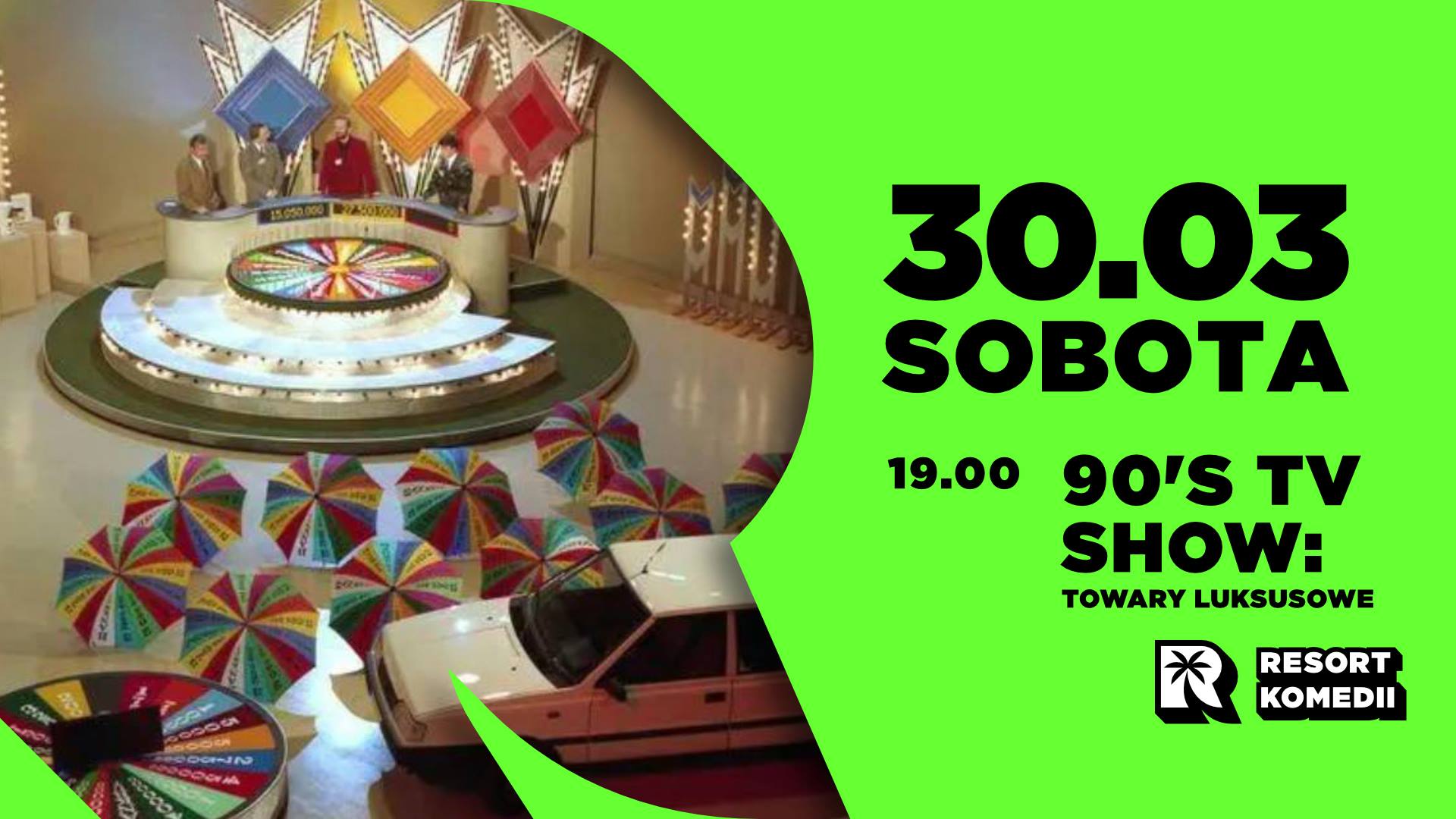 „Zapraszamy na 90's Tv Show - cykl komediowy prosto z Resortu Komedii, w którym wybrane fragmenty ulubionych seriali i programów inspirują komiczki i komików do grania improwizowanych scen.”- piszą organizatorzy. Komicy nawiązywać będą do blichtru, luksusu i przepychu rodem z kineskopowego odbiornika. Bilety w cenie 20-25zł.