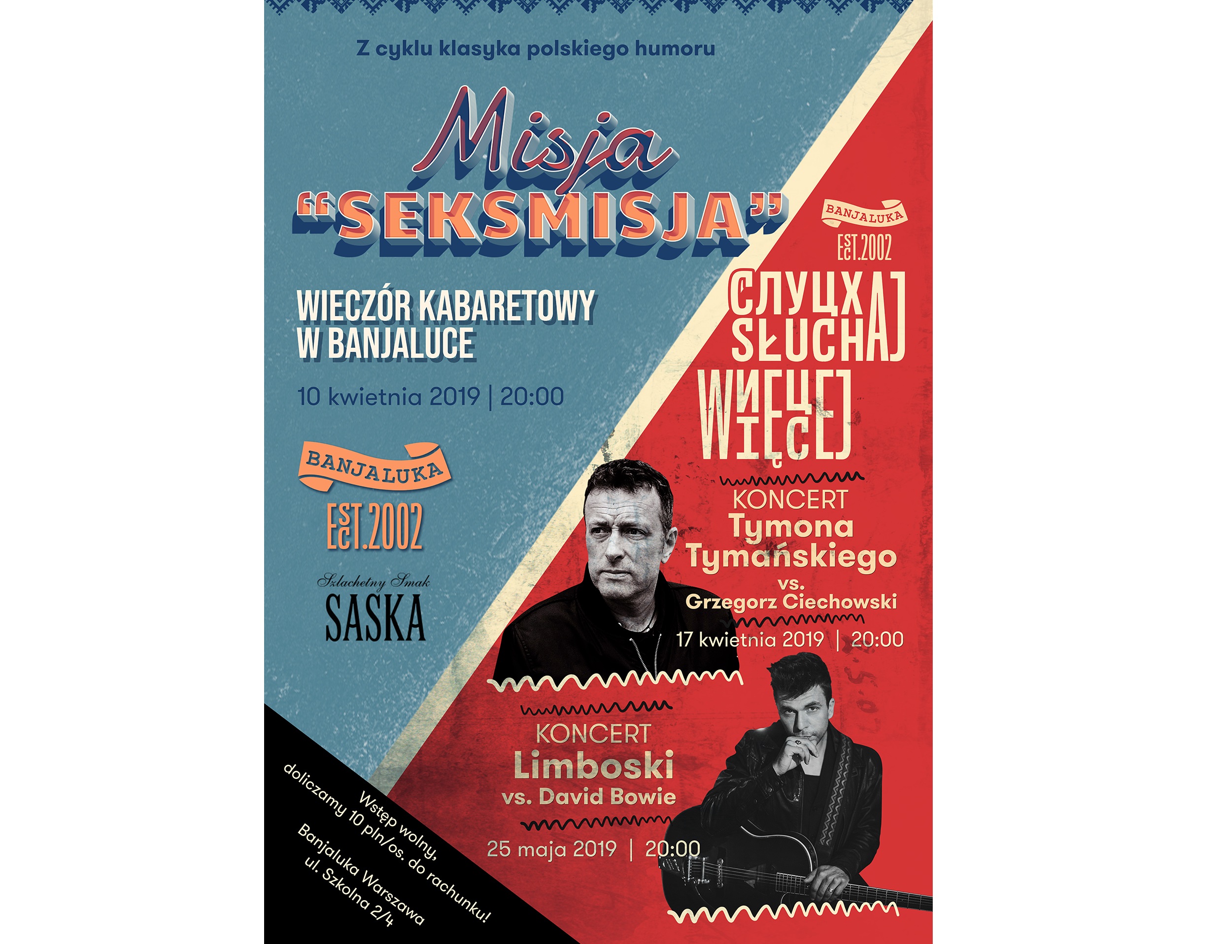 Klasyka polskiego humoru. Zajrzyjcie na Szkolną, aby uczynić środek tygodnia czymś więcej niż odliczanie do weekendu. Tego dnia na scenie restauracji stanie Grupa Improwizacji Teatr Bezczelny. Przyjadą do nas prosto z Lublina, aby pokazać Warszawie swoją reinterpretację kultowego filmu Juliusza Machulskiego pt.: „Seksmisja”. „Ponownie odkryją przed Wami humor tego filmu, zaczerpną z jego wieloznaczności i przekują w zupełnie nową jakość.” – piszą organizatorzy na stronie wydarzenia. To nie będzie zwykły kabaret, a spektakl interaktywny z udziałem publiczności. Nie wiemy jak wy, ale my nie możemy się doczekać!
