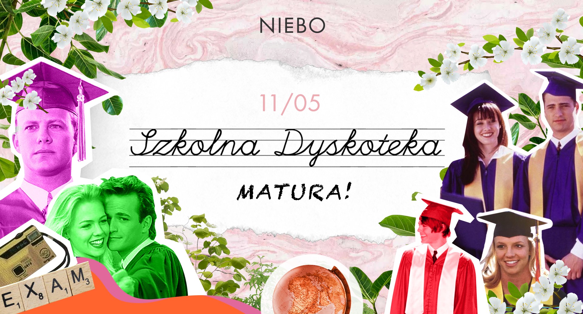 A na dobre zakończenie dnia? Oczywiście, że impreza! W NIEBIE tego wieczora będzie obowiązywał temat przewodni. Jak zauważyliście po tytule, dotyczył on będzie czasów szkolnych, a konkretnie roku maturalnego. Mile widziane mundurki, granatowe spódniczki, podkolanówki, białe t-shirt`y, godła i szkolne emblematy. Muzyka z różnych lat przywoła wszystkie, najbardziej ckliwe wspomnienia i sprawi, że znów poczujecie się, jakbyście mieli 18/19 lat. Btw – ten konkretny rodzaj imprezy możecie już kojarzyć z Pomostu 511 czy Snu Pszczoły. Będzie równie przaśnie. Lista fb do 23:00 wchodzi za free, cała reszta płaci dwie dyszki.
