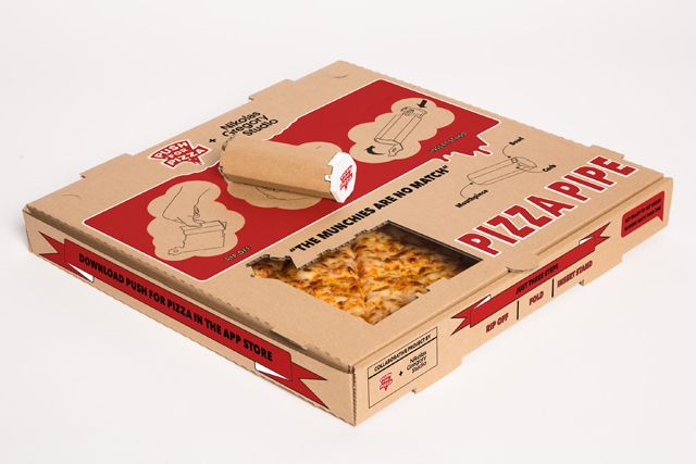 Push For Pizza - aplikacja dedykowana temu, by pizza dostarczana była do klientów bardzo szybko postanowiła, razem z designerem Nikolasem Gregorym zaprojektować pudełko, które będzie idealnie odpowiadało na potrzeby miłośników dobrego jedzenia/palenia.