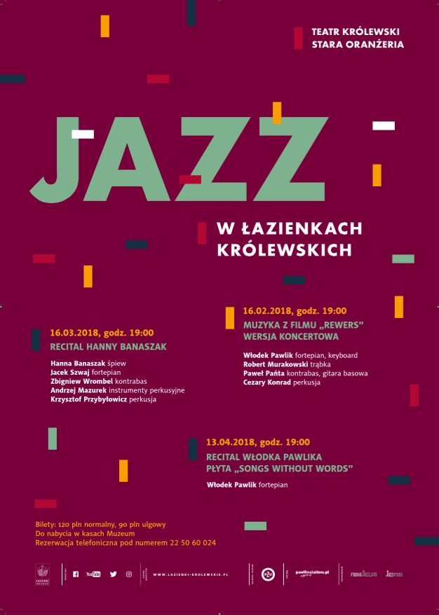 Koncert muzyki z filmu „Rewers” odbędzie się 16 lutego 2018 r. o godz. 19.00 w Teatrze Królewskim, w ramach cyklu „Jazz w Łazienkach Królewskich”. Usłyszymy kompozycje uznanego na świecie pianisty, Włodka Pawlika, które uhonorowane zostały m.in. Złotymi Lwami na Festiwalu w Gdyni oraz Złotymi Orłami, nagrodą Polskiej Akademii Filmowej.